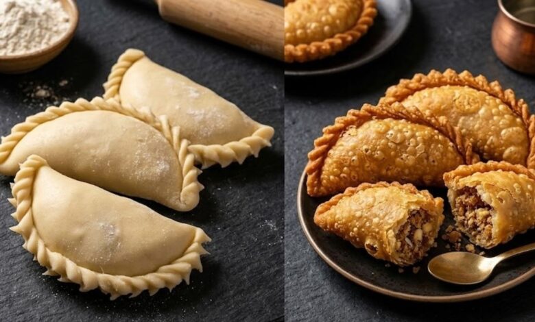 - गुजिया को सुंदर दीये (Diyas) का आकार देने के लिए इन आसान स्टेप्स को फॉलो करें.