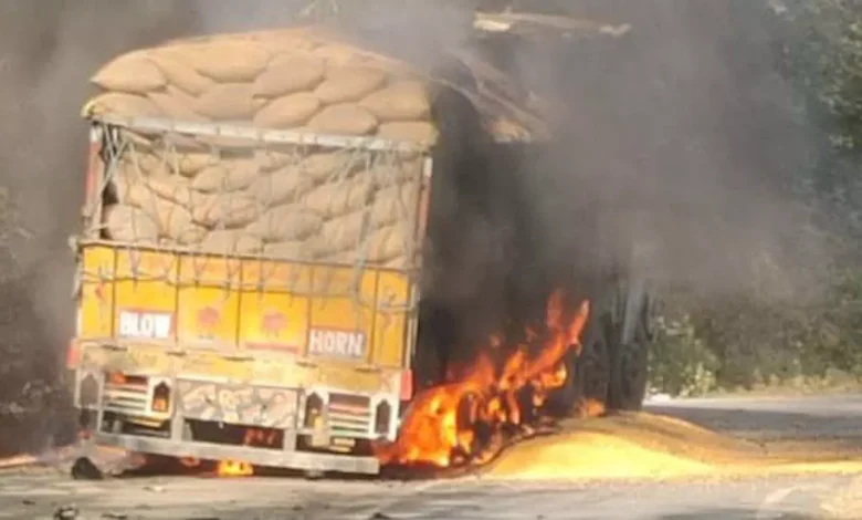 बड़ा हादसा : नेशनल हाईवे पर मक्के से लदे ट्रक में भीषण आग, यातायात ठप…जानें पूरा मामला