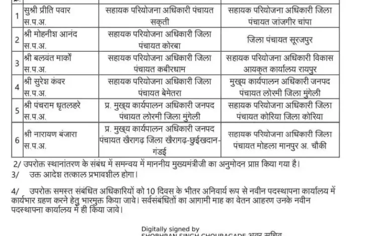 पंचायत विभाग में बड़े तबादले, 40 अधिकारियों को किया स्थानांतरित