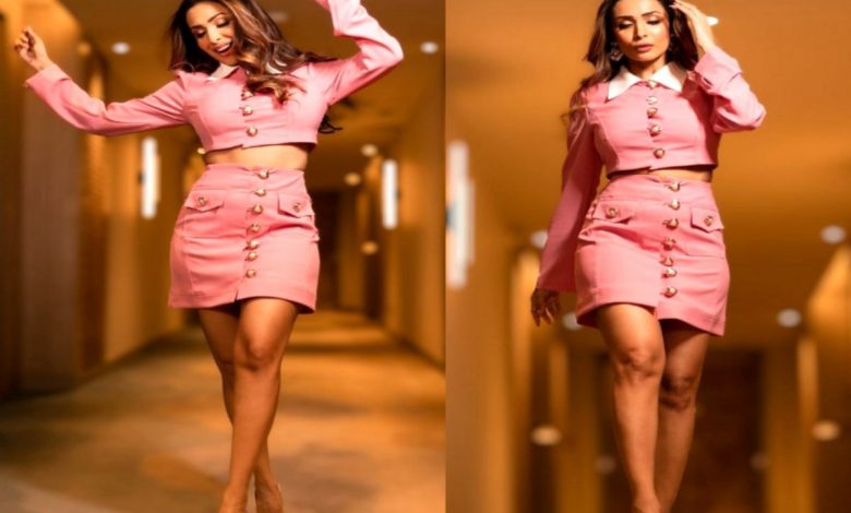 मलाइका अरोड़ा ने अपने इंस्टाग्राम अकाउंट पर अपनी लेटेस्ट तस्वीर शेयर की हैं। जिसमें उन्हें पिंक कलर के क्रॉप टॉप और शोर्ट स्कर्ट में देखा जा रहा हैं। इसके साथ ही उन्होंने हाई हील्स भी पहनी हैं। मलाइका अरोड़ा ने यहां बोल्ड मेकअप किया है। हेयर स्टाइल में बोलों को खुला रखा हैं। जिसमें वह बेहद खूबसूरत लग रही हैं।