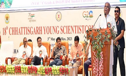 रायपुर। मुख्यमंत्री भूपेश बघेल बुधवार को राजधानी के पं. दीनदयाल उपाध्याय ऑडिटोरियम में आयोजित 18वें छत्तीसगढ़ यंग साइंटिस्ट कांग्रेस 2023 में शामिल हुए। छत्तीसगढ़ काउंसिल आफ साइंस एंड टेक्नोलाजी और पंडित रविशंकर शुक्ल यूनिवर्सिटी रायपुर के तत्वाधान में कार्यक्रम का आयोजन हुआ।