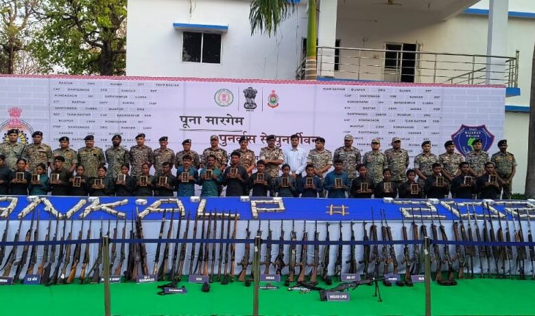 बस्तर में नक्सलियों का सामूहिक समर्पण, भारी संपत्ति और हथियारों की बरामदगी