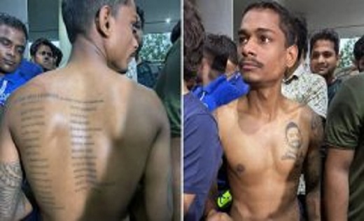 दिल्ली। टीम इंडिया के चैंपियंस वतन वापस आ चुके हैं। रोहित शर्मा की अगुवाई में भारतीय टीम सुबह 6 बजे दिल्ली के इंदिरा गांधी इंटरनेशनल एयरपोर्ट के टर्मिनल 3 पर पहुंची। एयरपोर्ट पर टीम इंडिया के कई उत्साही प्रशंसक मौजूद थे, जिनकी दीवानगी देखने लायक थी। एक फैन के सीने पर विराट कोहली की तस्वीर थी और पीठ पर खिलाड़ियों के नाम गुदे हुए थे। इस फैन के हाथ में तिरंगा भी था। जैसे ही फैन्स ने टीम इंडिया के खिलाड़ियों को देखा, उनका जोश दोगुना हो गया।