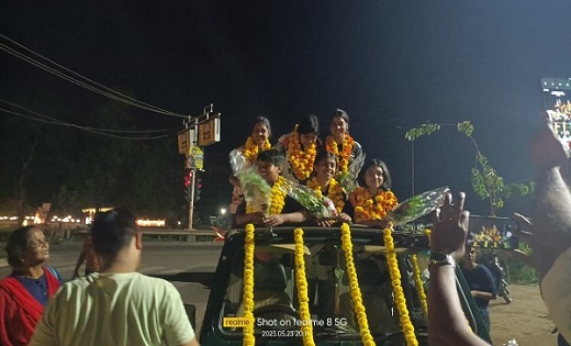 इन सभी खिलाड़ियों के प्रथम आगमन पर शहर में जोरों शोरों से स्वागत किया गया। ये सभी खिलाड़ी बस्तर मार्शल आर्ट अकादमी में प्रैक्टिस करते है ये दूसरा साल है जिसमें मिक्स मार्शल आर्ट प्रतियोगिता में बस्तर की बेटियों ने अपना जौहर दिखाया है और इतिहास रच रही है। जिन खिलाड़ियों ने स्वर्ण पदक प्राप्त किए है वो आगामी होने वाले अंतर्राष्ट्रीय प्रतियोगिता में भारत देश का प्रतिनिधित्व करेंगे। इसकी इस उपलब्धि पर एमएमए इंडिया के अध्यक्ष शरीफ बापू, एमएमए इंडिया के जॉइंट सेक्रेटरी और छत्तीसगढ़ मिक्स मार्शल आर्ट एसोसिएशन के सेक्रेटरी नितिन सिंह और एमएमए इंडिया की राष्ट्रीय मेडिकल कमीशन की अध्यक्ष और छतीसगढ़ मिक्स मार्शल आर्ट एशोसिएशन की कोषाध्यक्ष डॉ दिव्या खरे और सर्टिफाइड कोच व रेफरी ममता पांडेय ने बधाई दी और साथ ही रोजविन दास, बस्तर मार्शल आर्ट अकादमी के अध्यक्ष विजयपाल सिंह, सचिव भगत सोनी, संरक्षक गौतम कुंडू, सर्टिफाइड कोच व रेफरी मार्कण्डेय सिंह, परमेन्द्र माला, एम. प्रशांत नायडू, गुरप्रीत कौर सैनी, ज्योति कुमार और इनके परिवार वालों ने भी बधाई एवम शुभकामनाएं दी है।