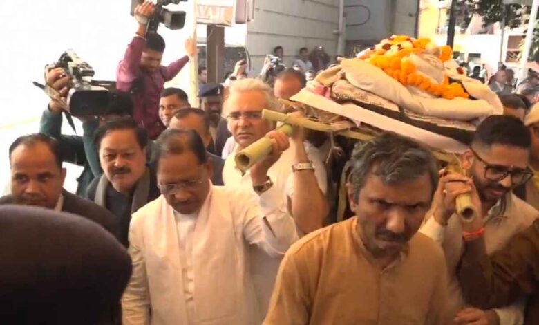अंतिम सफर पर विनोद कुमार शुक्ल: सीएम साय ने निभाया ‘पुत्र’ का धर्म, कंधा देकर दी भावभीनी विदाई