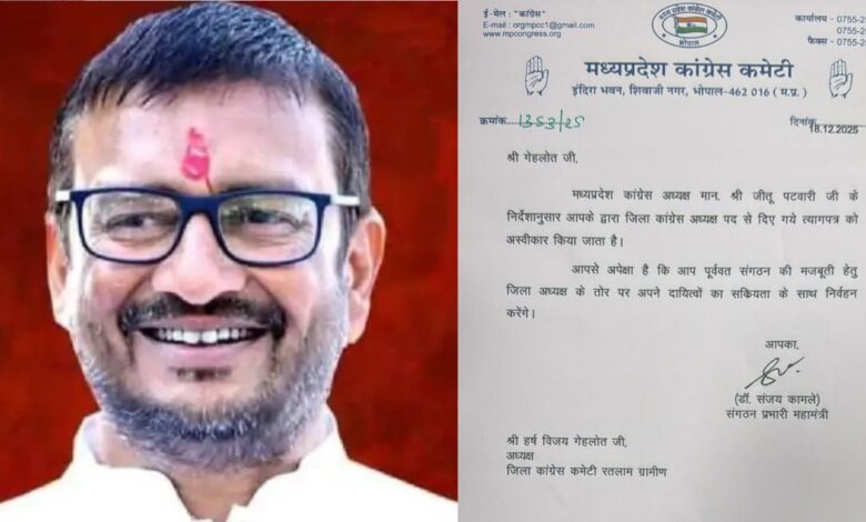 कांग्रेस में ‘आर-पार’! रतलाम जिलाध्यक्ष के इस्तीफे पर पटवारी का वीटो, गुटबाजी के बीच लिया बड़ा फैसला