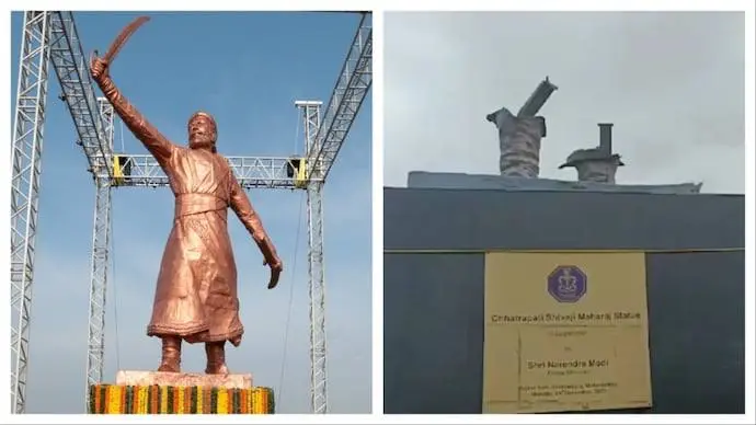 पीएम मोदी ने नौसेना दिवस पर किया था अनावरण…छत्रपति शिवाजी महाराज की 35 फीट ऊंची प्रतिमा ढही