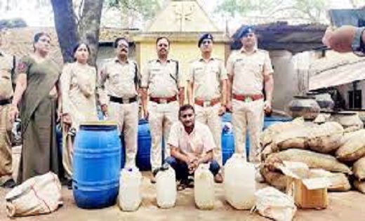 शराब कोचिए के घर पुलिस ने मारा छापा, लाखों का महुआ लाहन जब्त