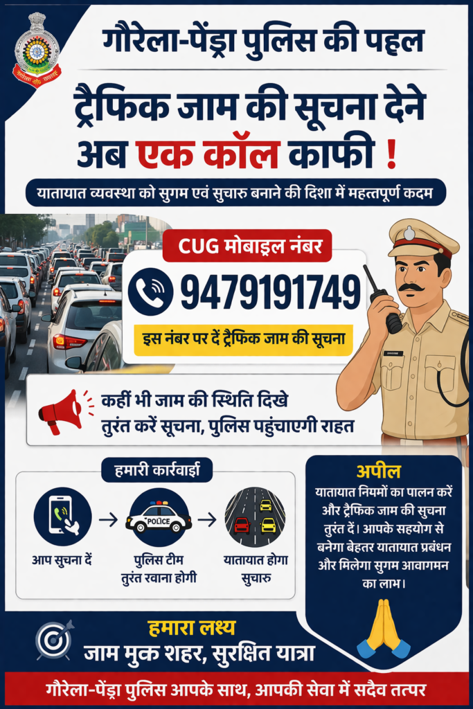 गौरेला-पेंड्रा में ट्रैफिक जाम से राहत के लिए पुलिस की नई पहल, CUG नंबर जारी..