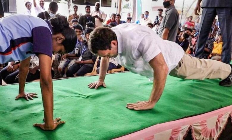 पचमढ़ी में राहुल गांधी ने लगाए 10 पुशअप, देर से पहुंचने पर मिली सजा