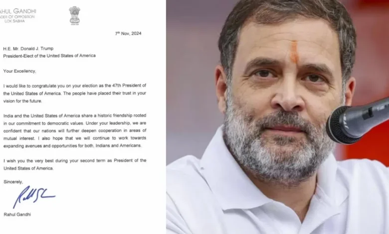 अपने लोकसभा में विपक्ष के नेता के लेटर पैड के जरिए दिए गए संदेश में राहुल ने ट्रंप के लिए लिखा, ‘मैं आपको अमेरिका के 47वें राष्ट्रपति के रूप में चुने जाने पर बधाई देना चाहता हूं. लोगों ने भविष्य के लिए आपके नजरिए पर अपना भरोसा जताया है.’ राहुल ने अपने संदेश में लिखा, ‘भारत और अमेरिका के बीच पुरानी दोस्ती रही है जो कि लोकतांत्रिक मूल्यों के लिए हमारी प्रतिबद्धता पर आधारित रही है.’