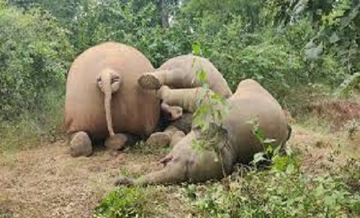 तीन हाथियों की करंट लगने से हुई मौत