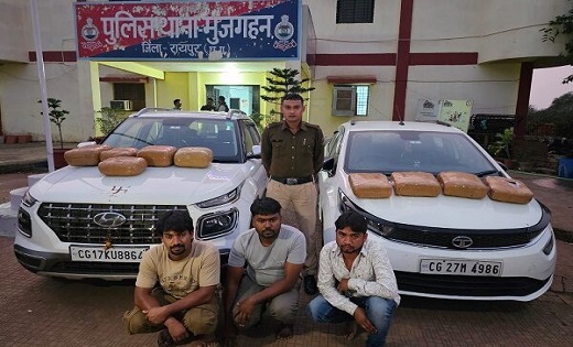 मुखबिर से मिली सूचना के आधार पर एण्टी क्राईम एण्ड साईबर यूनिट एवं थाना मुजगहन की संयुक्त टीम द्वारा कार्यवाही करते हुए 2 चारपहिया वाहन में गांजा तस्करी करते 3 आरोपियों को गिरफ्तार किया गया है। जिनके पास से लगभग 45 किलो 5 सौ ग्राम गांजा एवं गांजा तस्करी में प्रयुक्त 2 कार अल्ट्रोज और वेन्यू जप्त किया गया है। आरोपियों द्वारा उडीसा से गांजा परिवहन करके रायपुर में बिक्री करने के उद्देश्य से लाया गया था। गिरफ्तार आरोपियों में 1 आरोपी उडीसा, 1 आरोपी रीवा (म.प्र.) और 1 आरोपी कोण्डागांव का निवासी है। आरोपियों से पूछताछ की जा रहीं है। आरोपियों के खिलाफ नारकोटिक्स एक्ट के तहत थाना मुजगहन में कार्यवाही की जा रहीं है।