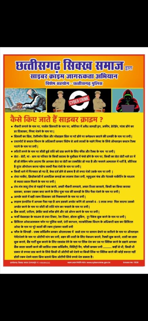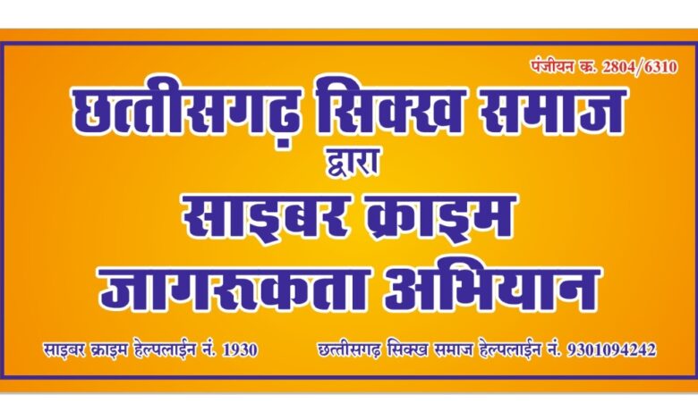 छत्तीसगढ़ सिक्ख समाज द्वारा सकूलों में कैंप लगाकर साइबर क्राइम जागरूकता अभियान की शुरुआत की जा रही है|