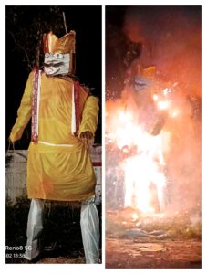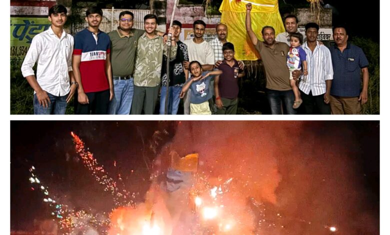 पुष्पा थीम पर बना 20 फिट का रावण, जालान परिवार के बच्चों ने किया सामूहिक निर्माण और दहन..