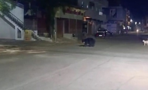 वन विभाग में मचा हड़कंप…आधी रात को बीच शहर में विचरण करते दिखा भालू