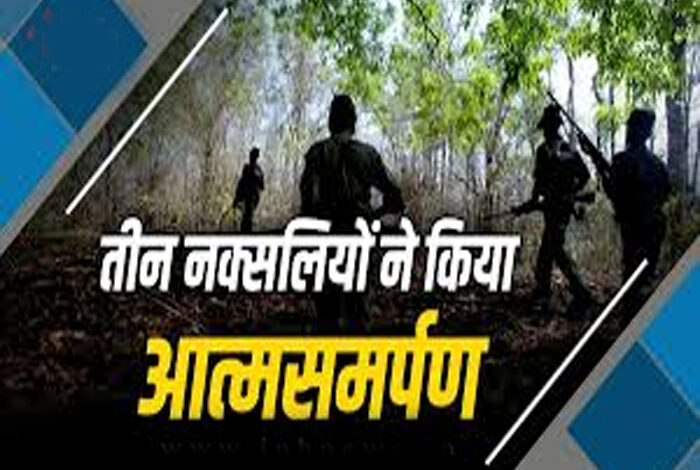 तीन नक्सलियों ने किया आत्मसमर्पण…कई बड़ी घटनाओं में थे शामिल..!!