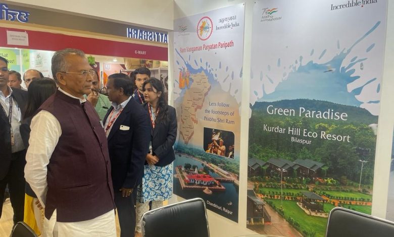 छत्तीसगढ़ पैवेलियन में आज छत्तीसगढ़ के लोक निर्माण, गृह, पर्यटन एवं धर्मस्व मंत्री ताम्रध्वज साहू ने विभागीय अधिकारियों के साथ छत्तीसगढ़ टूरिज्म के स्टॉल का जायजा लिया और प्रदर्शित परियोजनाओं का अवलोकन करते हुए उनकी जानकारी ली।