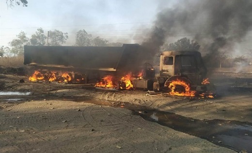 हाईटेंशन तार की चपेट में आने से धू-धूकर जला ट्रक, ड्राइवर की दर्दनाक मौत