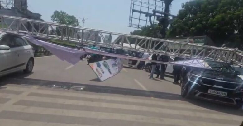 हादसे में घायल मजदूर को तत्काल उपचार के लिए अस्पताल भेजा गया है। वहीं कारों को भी नुकसान पहुंचा है। मौके पर मौजूद लोगों का कहना है कि सेटअप हटाते वक्त सावधानी नहीं बरती गई, जिससे यह दुर्घटना हुई।