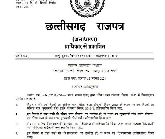 छत्तीसगढ़ में बदलाव की बयार: विष्णुदेव साय सरकार ने ‘तीरथ बरत योजना’ को दिया पुराना नाम, अब होगी ‘मुख्यमंत्री तीर्थ दर्शन योजना’
